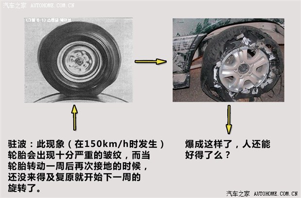 会导致什么后果?在这种状态下,驻波的这部分花纹受到剧烈的摩擦而急剧升温,不久就引起胎面橡胶从内部胎体剥落,从而导致高速爆胎!从发生驻波现象到爆胎,开车的人不会有任何感觉和预兆。不像漏个气,方向跑偏什么的,这是高速上独有的致命的现象,而事故后人们都只是简单的归纳说是爆胎。